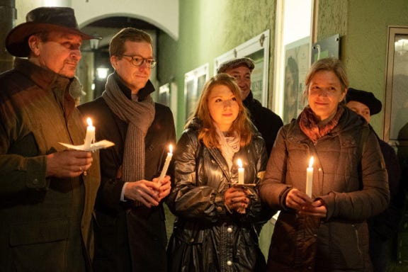 Mitglieder von Nie wieder! bei einer Mahnwache in Schongau, 26.02.2020