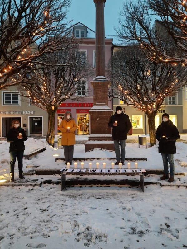 Inmitten der Corona-Pandemie haben wir am Fuße der Mariensäule in Weilheim still der Opfer des Nationalsozialismus gedacht:
