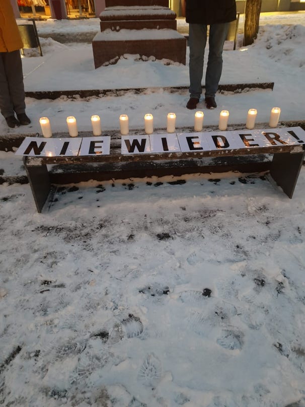 Wir gedenken der ermordeten Menschen und wir ehren die Opfer, die die Hölle deutscher Vernichtungslager überlebt haben und bis heute Zeugnis ablegen und die Erinnerung damit lebendig halten. Gerade in diesen Tagen, in denen sich Anhänger*innen einer Partei, die sich eine Wende in unserer Erinnerungskultur herbeisehnen, um kommunale Mandate bewerben und so auch noch die bürgernächste politische Ebene vergiften wollen, ist lebendige Erinnerung besonders wertvoll.